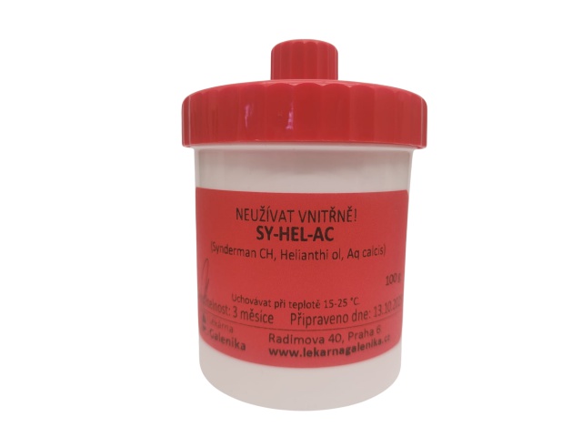| Složení 100 g: | Helianthi oleum raffinatum 10,0 g Calcii hydroxidi solutio 20,0 g Sydofarm ad 100,0 g | |